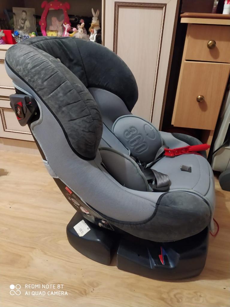 Поворотный механизм позволяет вращать кресло на 360°, что удобно для посадки и высадки ребенка