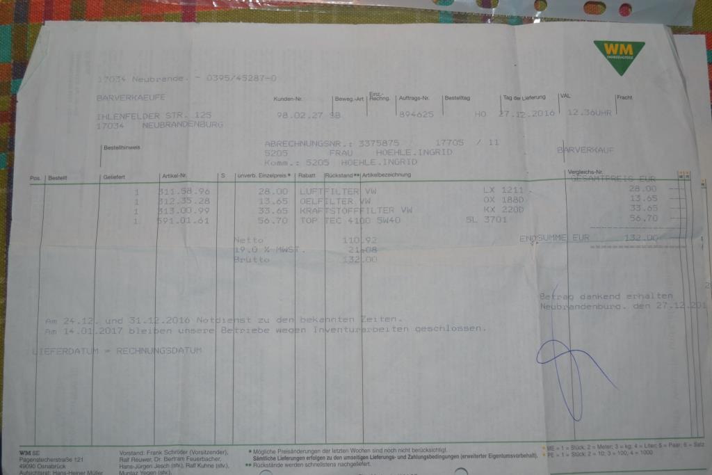 Прикладываю пару фотографий: одна общая, а вторая – это товарная накладная из магазина запасных частей в Германии (так, для общей информации).