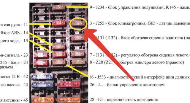 Нашел на форуме расшифровку предохранителй. У меня как раз под номер 3 на 5 ампер сгорел, пока не доехал до магаза поменять, чтобы проверить в нем дело или нет. Вопрос в следующем, в рекомендациях по вождению и обслуживанию этот предохранитель отвечает за корректор фар. Чему верить?