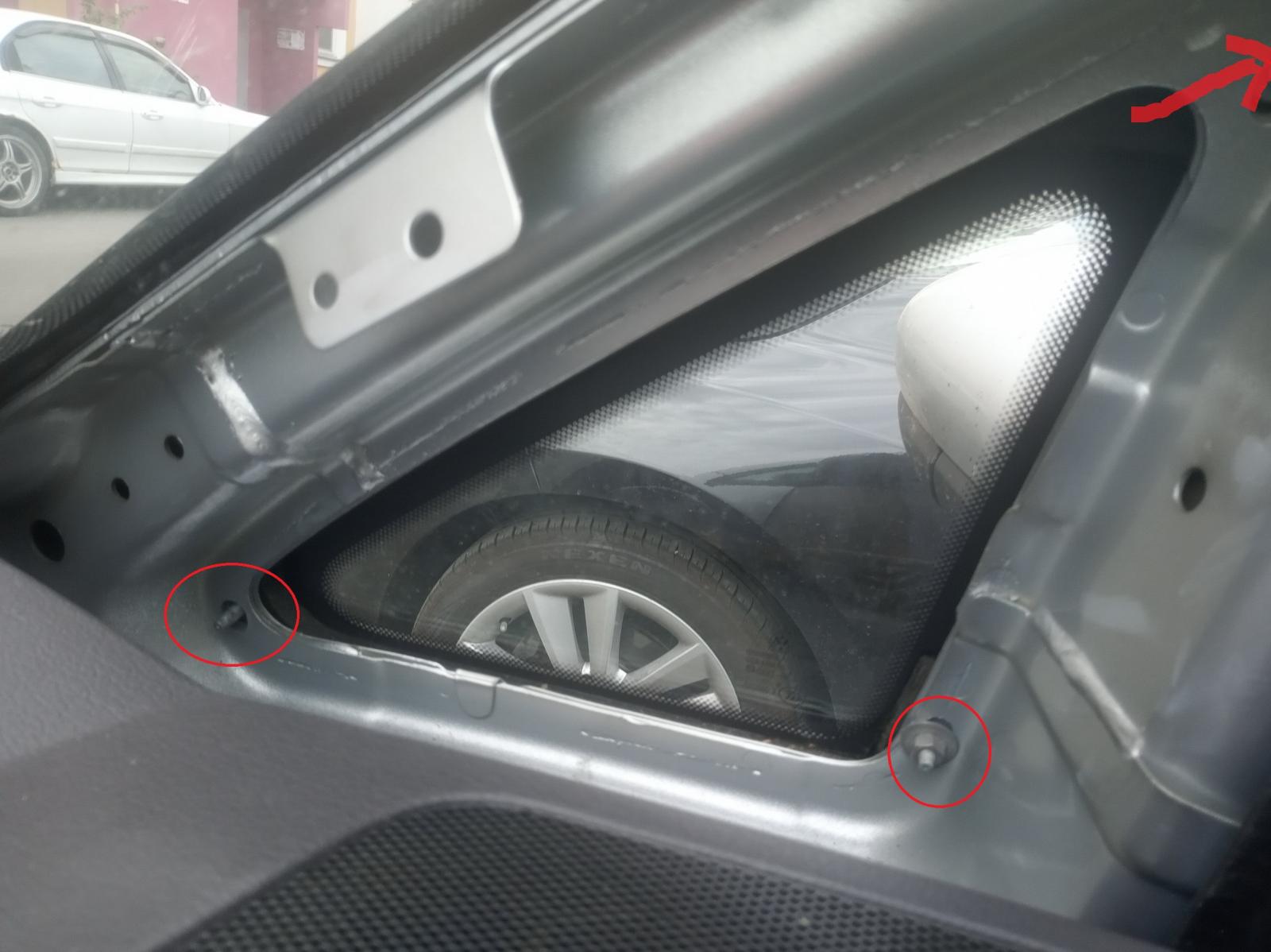 выдавливаем аккуратно стекло. В интернете писали что у некоторых боковое стекло посажено на клей. у меня по периметру штатный уплотнитель.