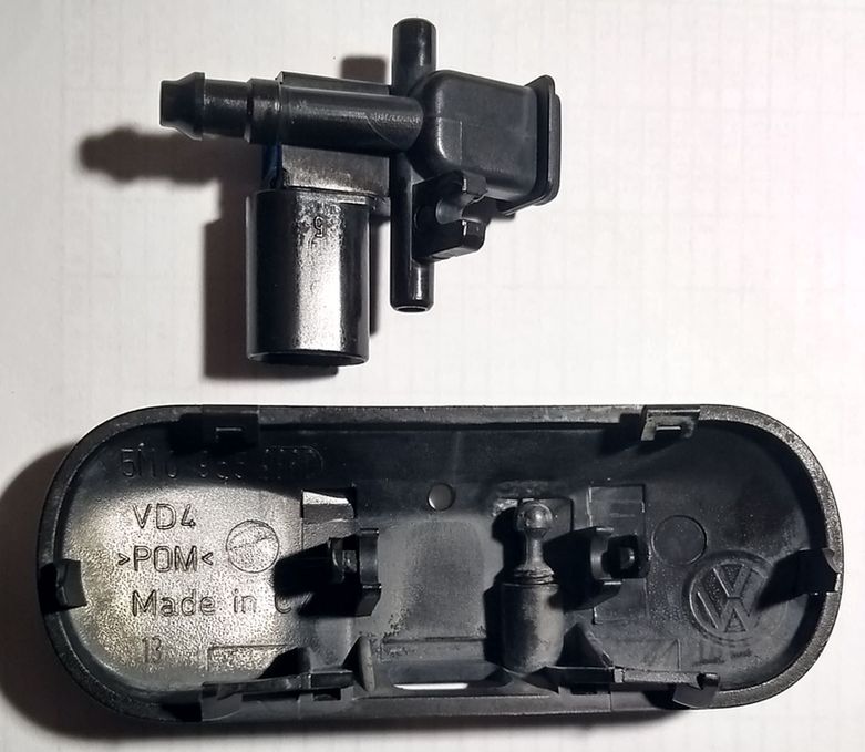 В последнее время обратил внимание, что омыватели лобового стекла стали брызгать как-то не очень хорошо, вместо распыления вода стала разбрызгиваться какими-то струйками. За почти 12 лет эксплуатации Турана форсунки ни разу не снимал, воду (в тёплое время года) лил только отфильтрованную. Ну, думаю, пришла пора провести промывку форсунок, тем более недавно попалась на глаза эта тема. В выходные помыл машину, натёр стекла аналогом Аквапеля от Черепашки и снял форсунки. Навёл крепкий раствор лимонной кислоты и положил их туда. Результат - форсунки работают как с новья, распыл отличный. Заодно сфотографировал разобранную на детали форсунку, может кому интересно будет знать как она устроена. На последнем фото хорошо виден номер детали. Не знаю, какой он сейчас, у меня Туран 1Т2, модельный год 2009. Сопротивление греющей катушки примерно 44 Ом.