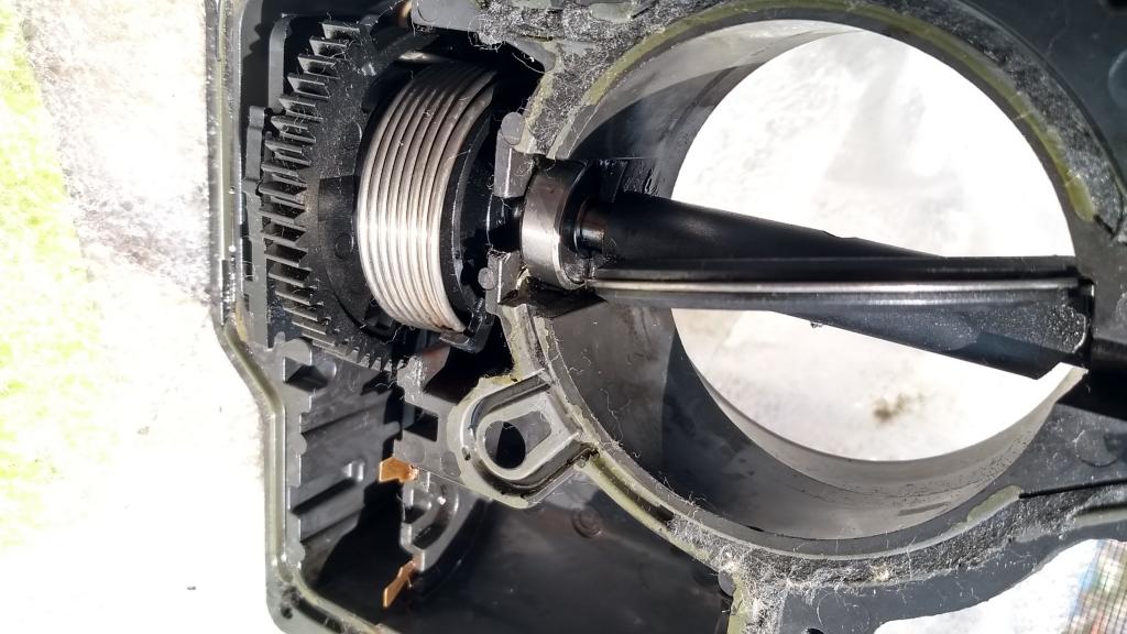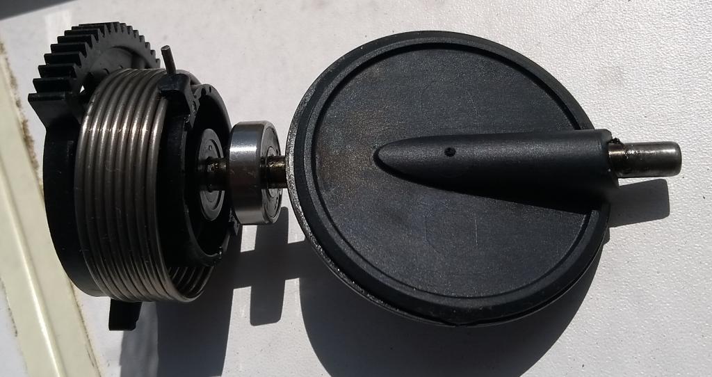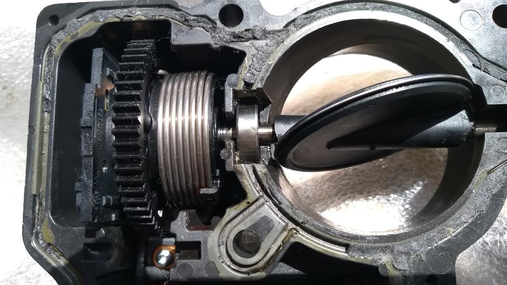 Как лечится эта проблема, тоже уже давно известно: либо замена самой заслонки на новую (исправную), либо её восстановление своими силами. Свою проблему в 2014 году я решил заменой на новую, обошлась она тогда мне где-то в 7500 рублей, недёшево, но что делать. Про самостоятельный ремонт я тогда ещё не знал, а ездить надо было, поэтому купил новую. Старую оставил в своём хламовнике и, спустя какое-то время, здесь кто-то дал ссылку на Дром как раз о ремонте этой заслонки. Я также располовинил свою заслонку, посмотрел на замасленные "кишки" и оставил её в таком состоянии лежать дальше. И вот, наконец-то решил починить хранящийся без толку узел, чтобы в случае чего была запасная РЗ. Я разобрал её, можно сказать, подетально, просто так, узнать, что же в ней такого, из-за чего она перестаёт работать нормально. Легче всего извлекается светлая шестерёнка, немного сложнее моторчик, ну а чтобы извлечь всё остальное, нужно освободить подшипник оси заслонки, который по краям залит тем же клеем, которым склеены половинки пластикового корпуса. Пришлось призвать на помощь жену, я держал корпус с подшипником, она пару раз стукнула по металлической оси молотком через отвёртку. После осмотра извлечённых потрохов стало ясно, что все детали целые. В чёрной шестерне запечатан магнит, а в белой пластиковой плате в выпирающем стержне запечатана катушка и, по всей видимости, тот магнит при вращении шестерни наводит электро-магнитное поле, величину которого и отслеживают мозги блока управления двигателем. И хотя обе эти детали также были слегка в масле, стало ясно, что оно никак не могло повлиять на некорректную работу заслонки. Оставалось только проверить электромоторчик. Достаём его, стянув контактные пластины с клемм моторчика. Из-за его расположения в нижней, при установке РЗ на впускном тракте, части корпуса заслонки, всё масло, которое проникает внутрь, стекает именно к моторчику и попадает внутрь его корпуса и как-то влияет на его нормальную работу. Я просто налил в обрезок пластиковой бутылки обезжиривателя на основе бензина, опустил туда моторчик (он был полностью закрыт жидкостью) и довольно долго полоскал его там. Полоскал до тех пор, пока грязная маслянистая жижа не перестала вытекать из него. На фото видно, сколько мелкой грязи вымылось из его внутренностей. После этого просушил как следует на солнце и проверил работу, подав на него +12 вольт. Он бодренько заработал, что показало его исправность. Осталось только собрать всё назад, но тут меня ожидала небольшая засада. Дело в том, что на чёрной шестерне стоит возвратная пружина, которая держит кругляш заслонки в открытом состоянии. Пришлось немного напрячь извилины, чтобы понять как собрать этот узел так, как надо. Так что, если кто будет заниматься промывкой внутренностей - просто не извлекайте эту шестерню, вам это не даст ровным счётом ничего, кроме лишней мороки с обратной сборкой. Естественно при условии, что эту чёрную шестерню не надо менять из-за сломанных зубьев. После окончательной сборки осталось только намазать половинки силиконовым герметиком и склеить их.