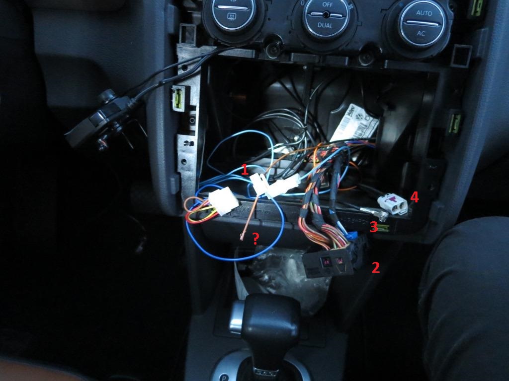 Та что двойная под номером 4 это и есть антенна - знания говорят, что эти 2 проводка тянутся к задним боковым стеклам, а интуиция подсказывает, что так VAG добивается лучшего приёма FM-сигнала (в сравнении, например, с Опелем). Тот что под номером 3 может это штатный GPS или камера заднего вида (у меня нет, только предположения).