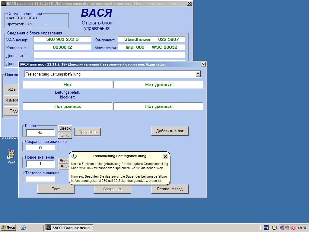 В Ваговской диагностике заходим в адаптацию, канал 43, ставим 1, болше ошибки не будет. Кстати, Миха писал об этом, вот пост: