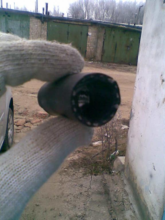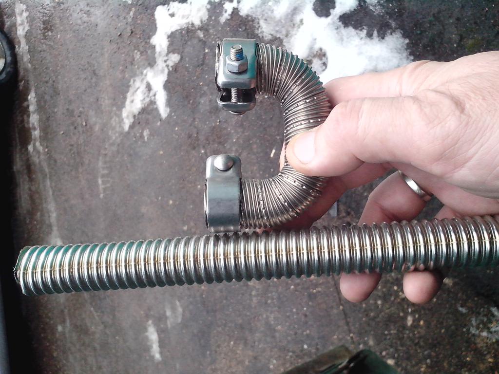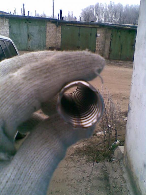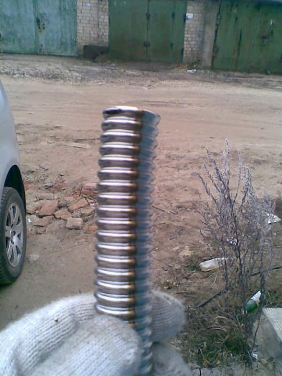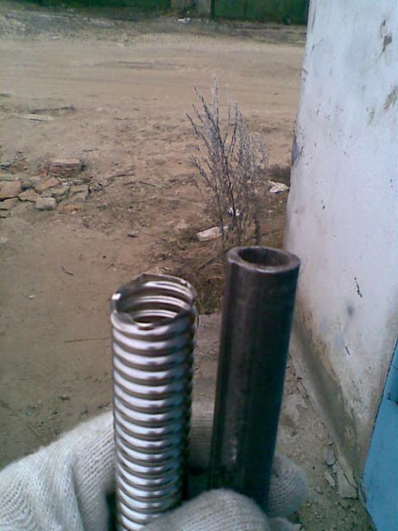 Берём кусок трубы чуть меньше диаметром, чем наша купленная гофра.